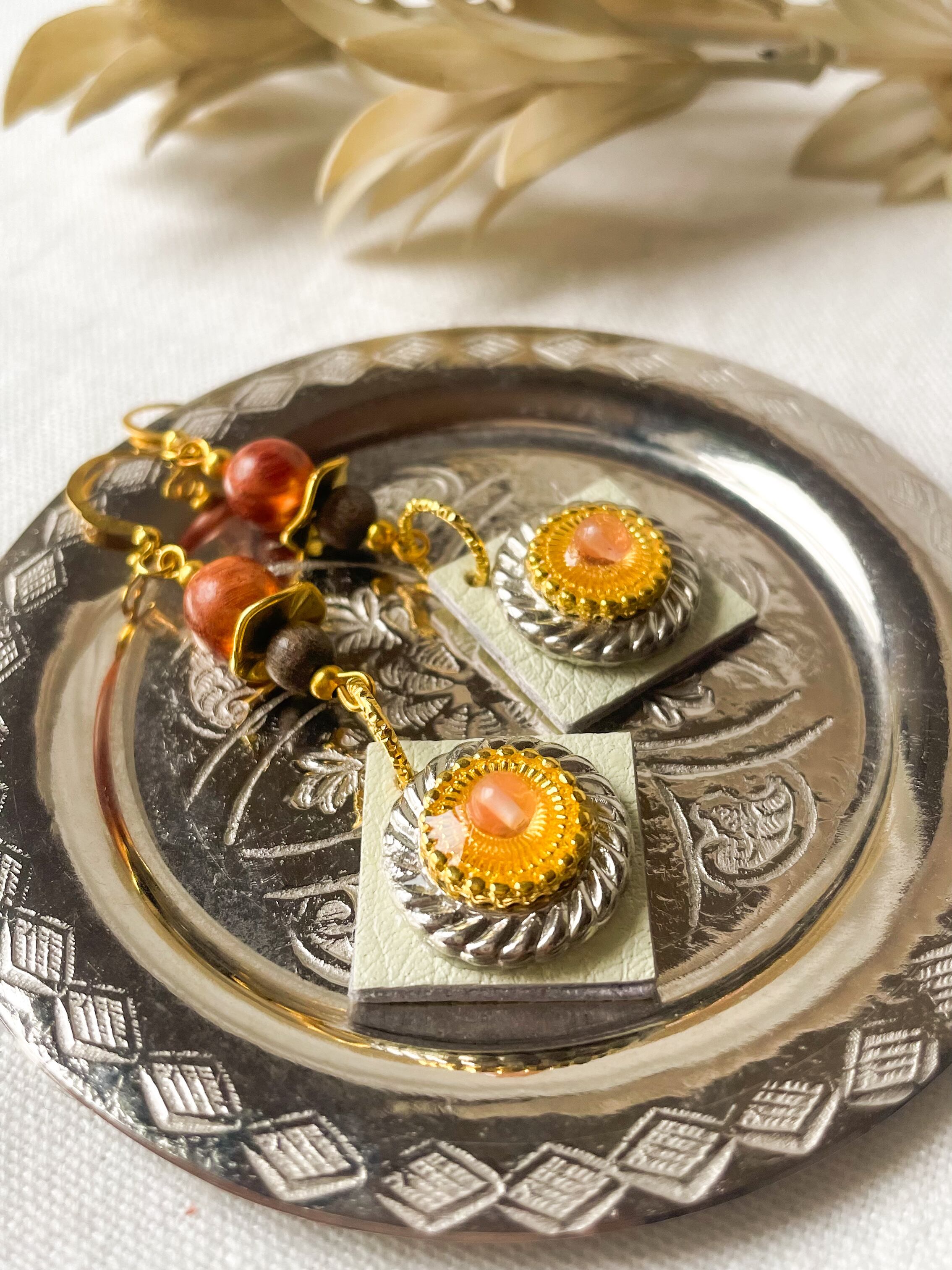 #LedadOR #レザーアクセサリー #本革 #ピアス #レザー #サージカルステンレス #バイカラー #天然石