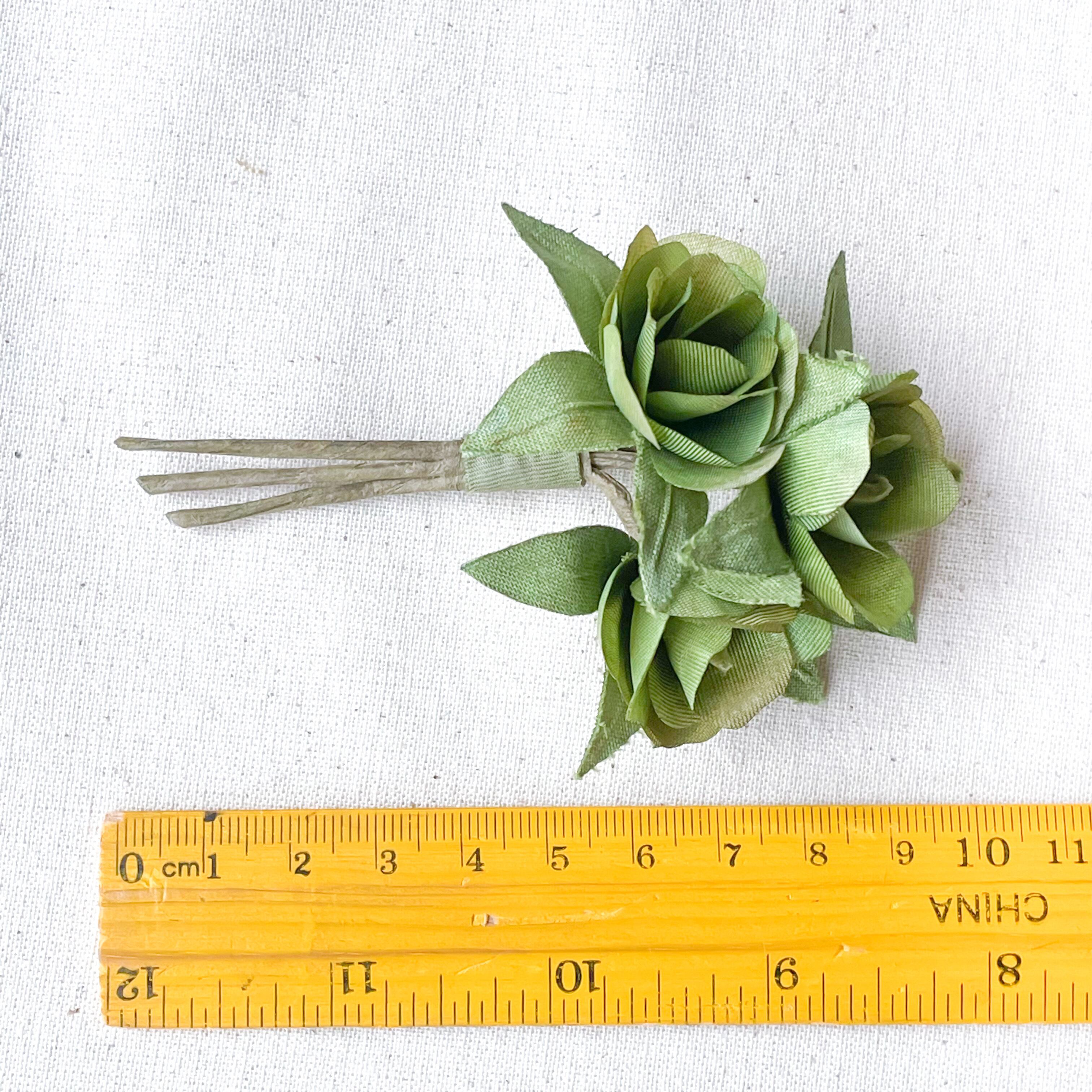 白い布地から染めて、小花に仕立てました。