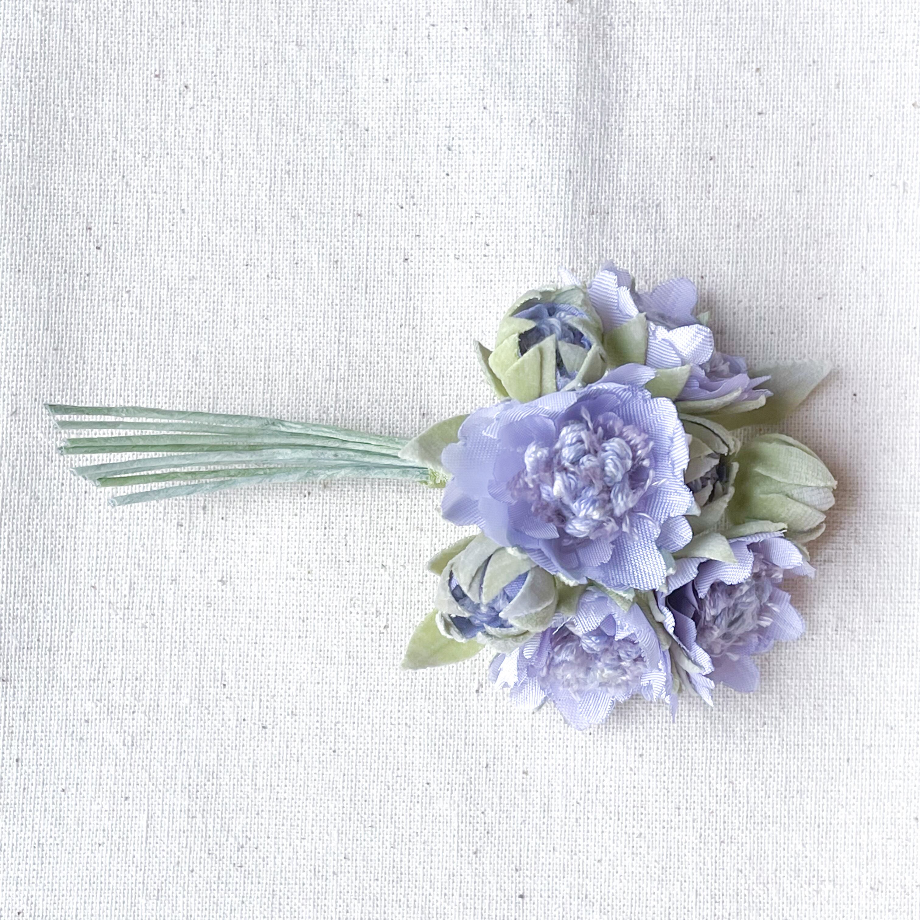 白い布地から染めて、小花に仕立てました。