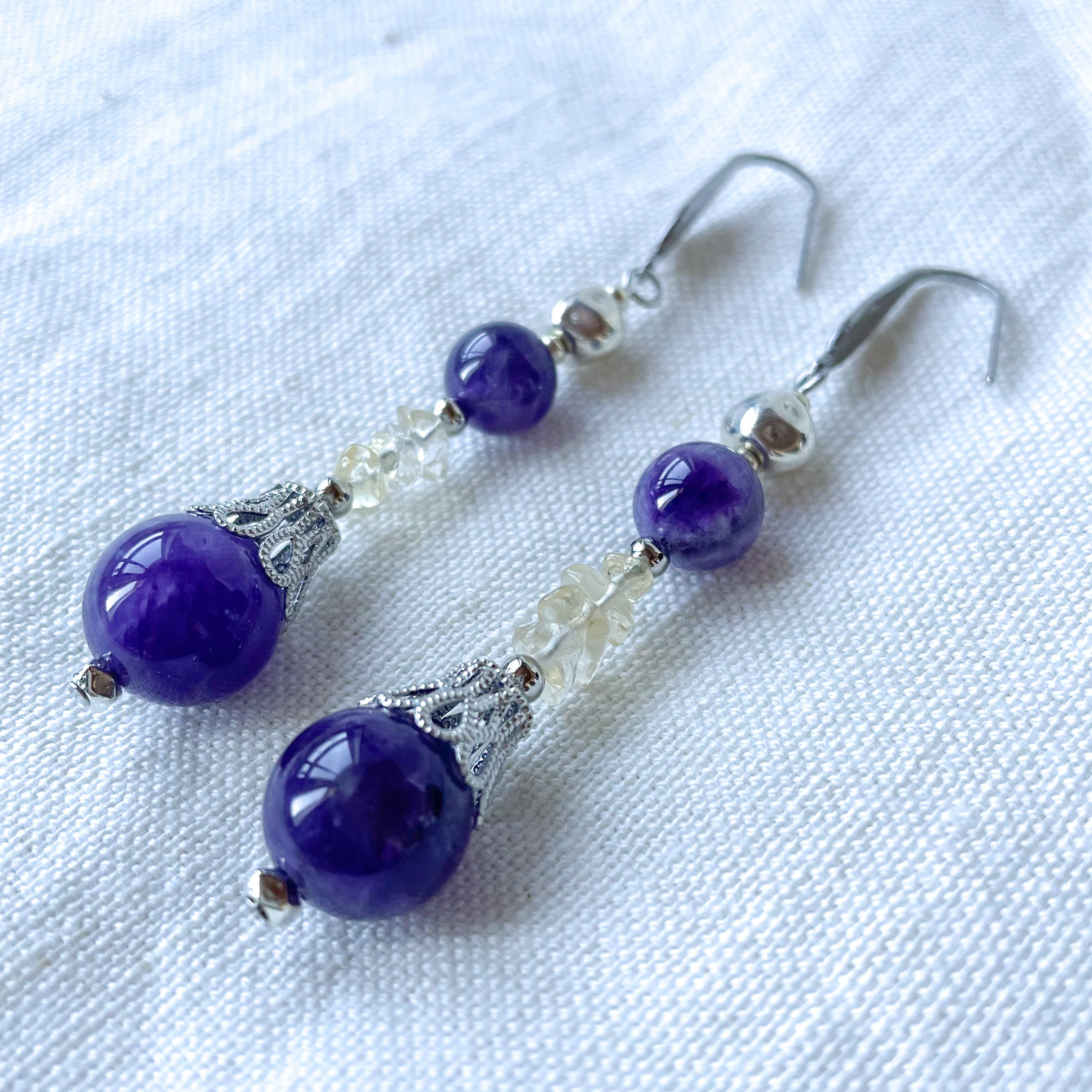 #LedadOR #天然石 #天然石アクセサリー #アメシスト #シトリン #ハンドメイドピアス